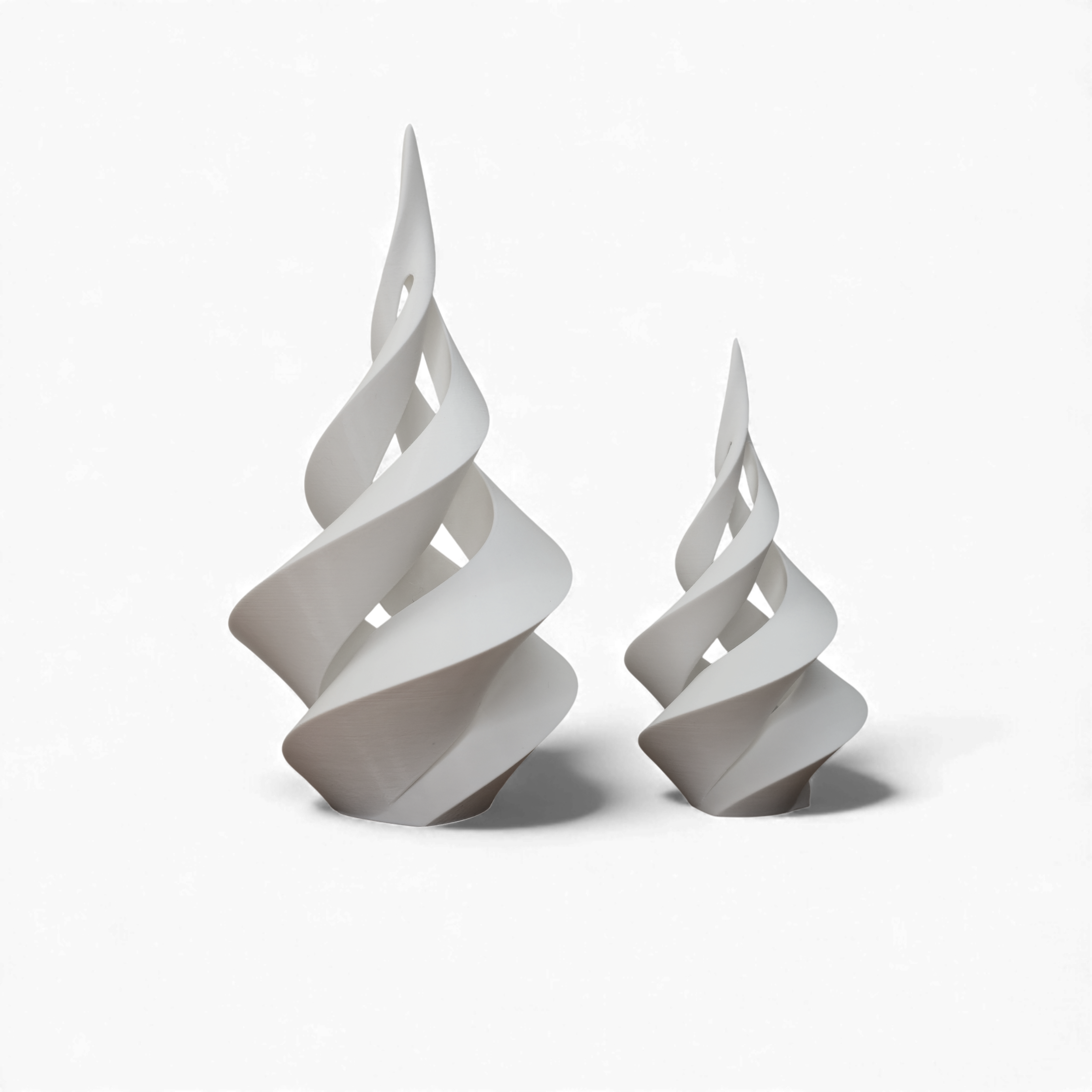 Design en Mouvement : La forme en spirale continue confère à ces sapins une légèreté visuelle unique. Ils semblent être en rotation, capturant et dirigeant la lumière d'une manière exceptionnelle.