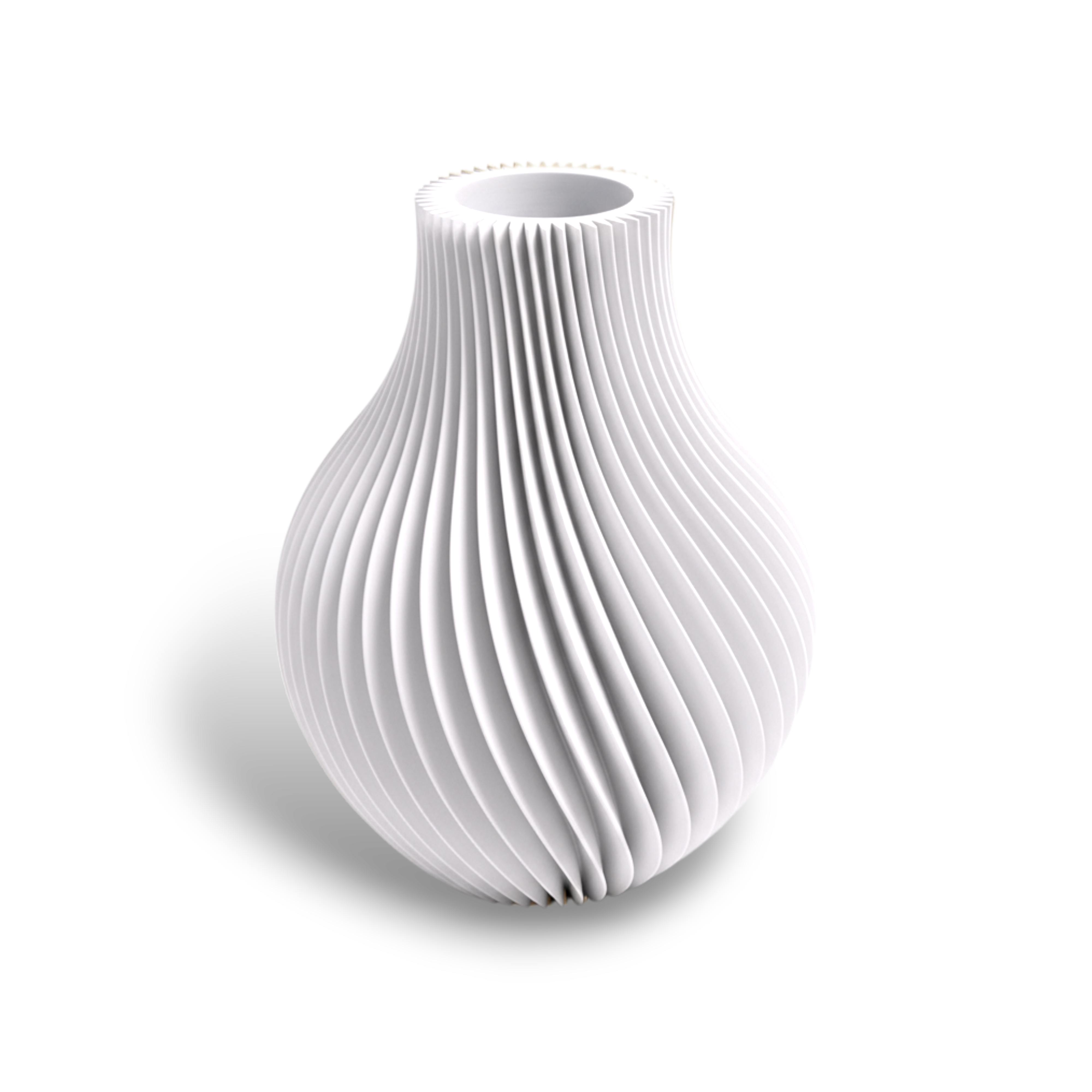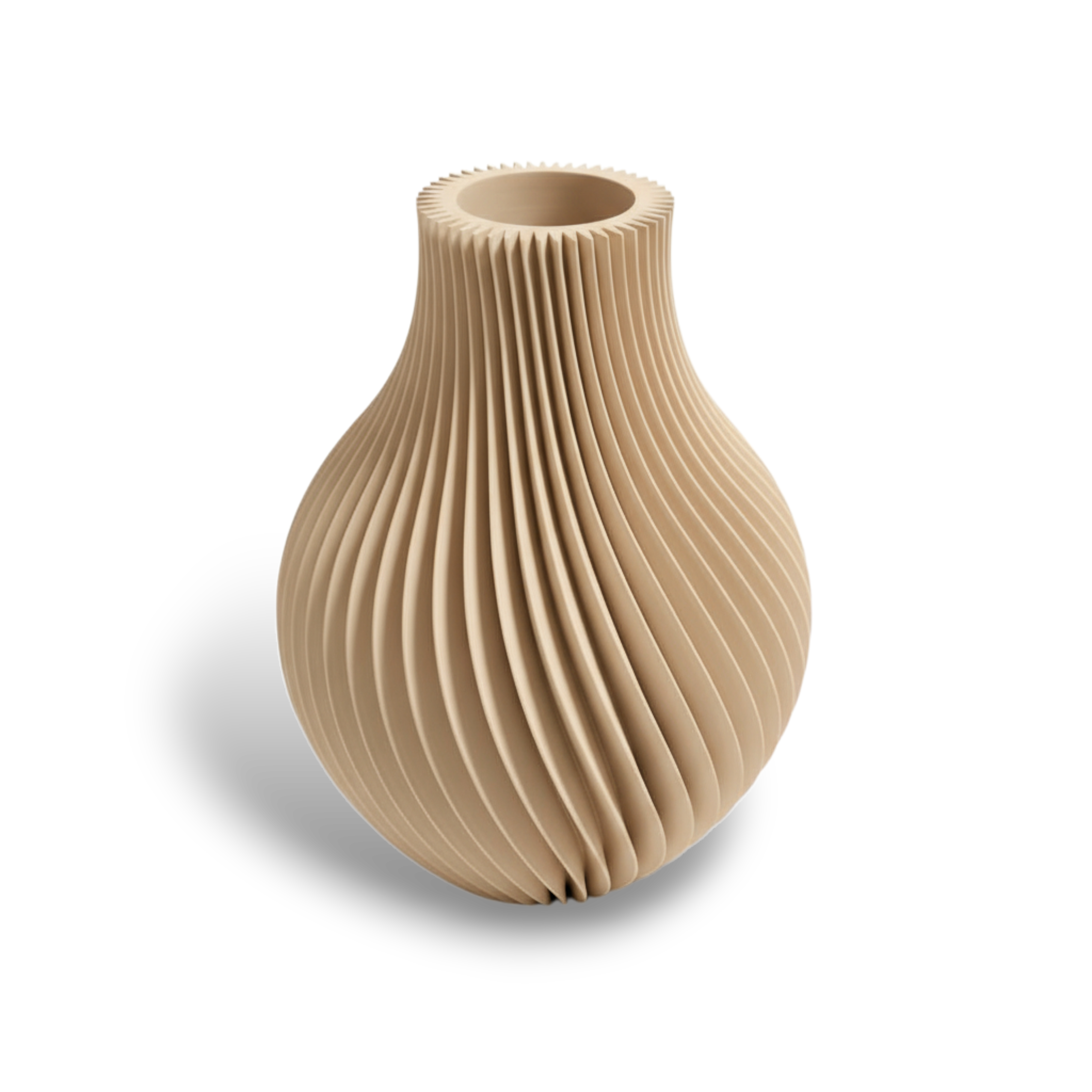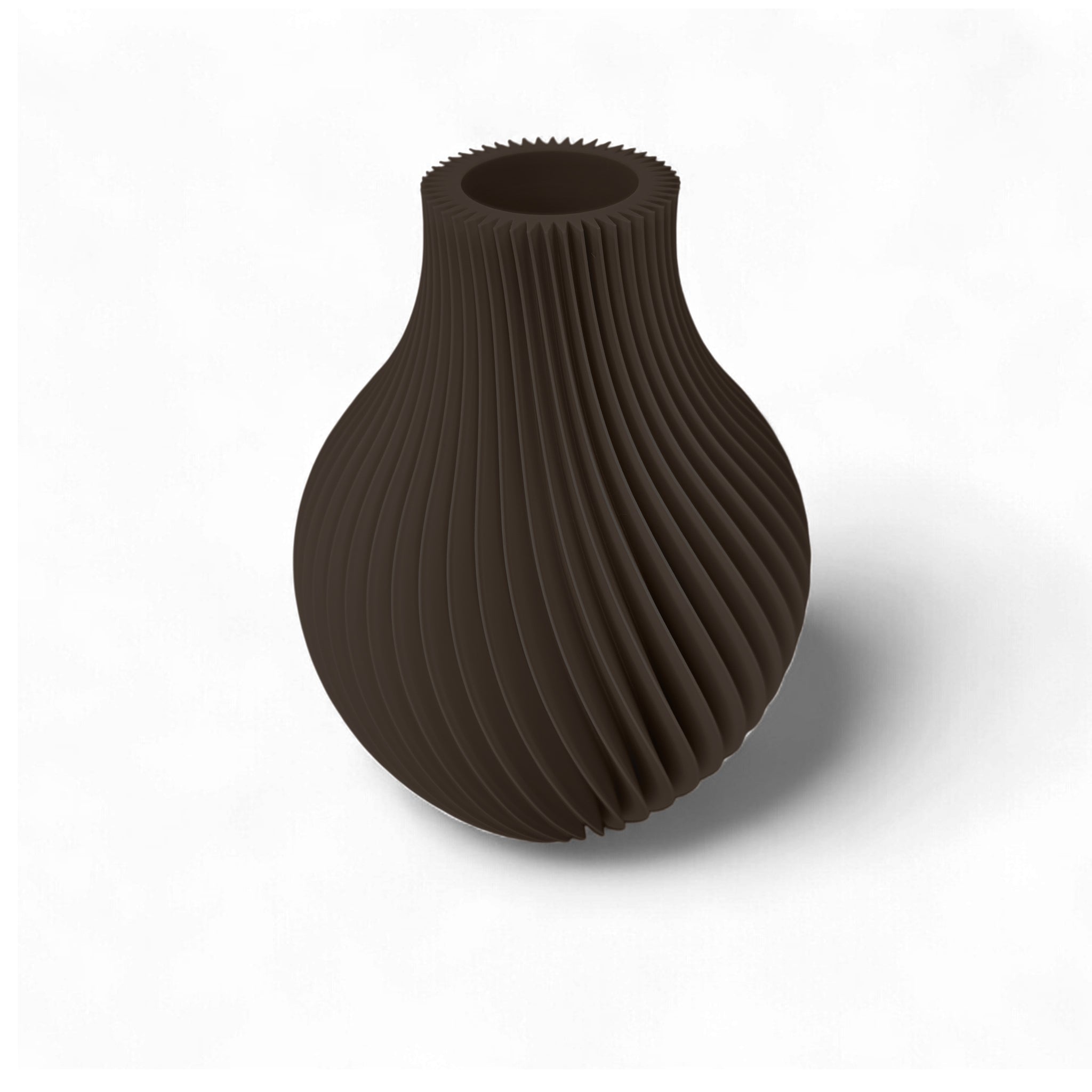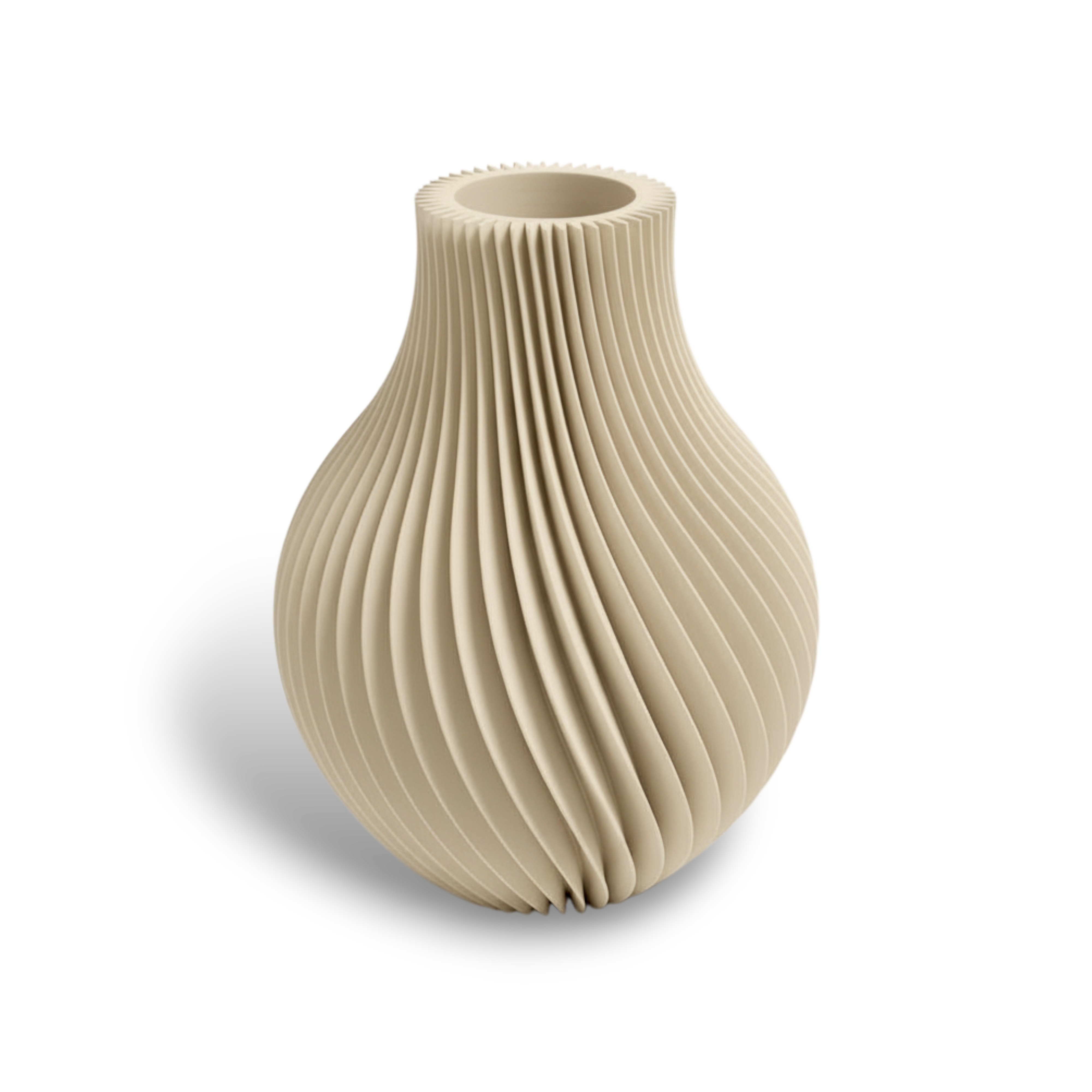 Design Sculptural en Spirale : Sa surface est travaillée avec de fines rainures torsadées qui créent un jeu d'ombres et de lumière captivante. Cet effet cinétique unique ajoute une profondeur sophistiquée à votre décoration, même lorsqu'il est vide.